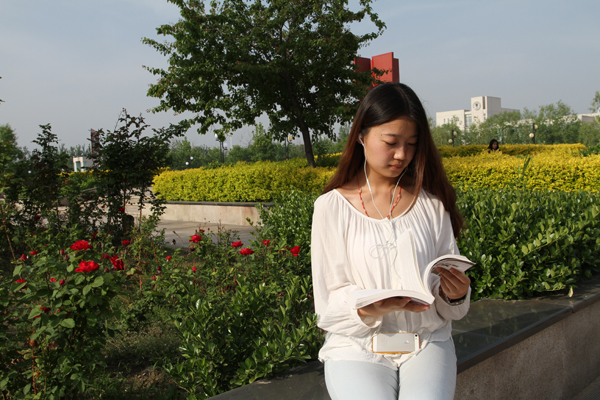树荫下,连廊旁,图书馆,自习室……或站,或坐,或写,或沉思……阳光洒在身上,空气中弥漫着芳香。因书,生命变得精彩;因书,人生便与众不同。
