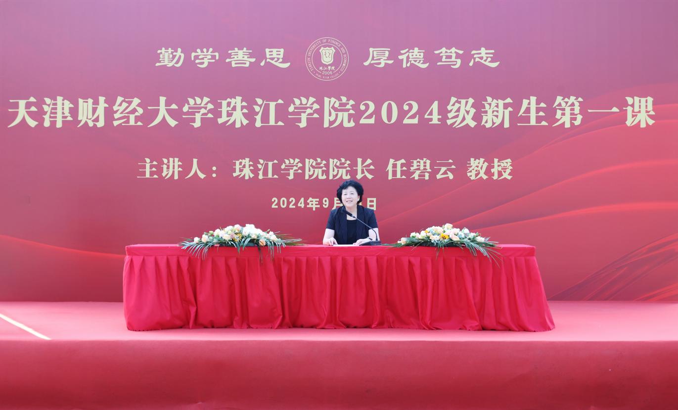 立足百年未有之大变局,着眼教育强国重要使命。任院长深入浅出的阐述了世界大势和时代潮流,她指出同学们要坚持胸怀天下,要树立世界眼光,要把握时代脉搏,不被乱象迷眼,不畏浮云遮眼,科学认识历史发展规律,准确把握世界发展大势,在历史前进的逻辑中前进,在时代发展的潮流中发展。她结合党的二十大精神和2024年政府工作报告,指出每一位珠江学子,要牢牢把握以中国式现代化全面推进中华民族伟大复兴的重大原则,始终坚持中国式现代化的中国特色、本质要求和重大原则;要深刻理解新质生产力的内涵、特征和发展路径,锚定全面建成社会主义现代化强国的使命任务,按照党的二十大作出的重大战略部署,坚定信心、锐意进取,不断夺取全面建设社会主义现代化国家新胜利。任院长鼓励同学们挺膺担当,积极投身强国建设和复兴伟业,以三名珠江学子的奋斗故事和丰硕履历,为新同学的四年大学生活树立学习的榜样,强调当代青年生逢其时、重任在肩。