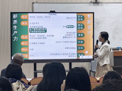 在教师校外培训信息分享会上,任健老师结合培训心得,详细介绍了人工智能技术如何与教学创新相结合,为如何提升高等教育教学效果提供了前瞻性视角。刘学智老师结合会议内容,探讨了智能会计的研究与教学实践,为学院在智能会计领域的发展方向提供了重要参考。郭星玮老师回顾了天津智库交流营的学习之旅,分享了社科联对智库研究的多项要求,帮助教师们更好地理解智库作用,为更好的服务社会指明了方向。
