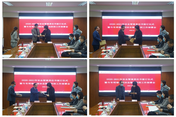 为做好今冬明春校园安全稳定防控工作,落实安全责任制,12月10日上午,我院在弘毅楼综合培训室召开2020-2021年度安全管理责任书签订仪式暨今冬明春校园安全稳定防控工作部署会。学院领导班子、各二级学院并部级单位负责人参加了会议。会议由安全部部长赵伟主持。