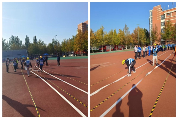 竞赛项目涵盖了多个方面,包括两盘水带连接操、双人更换水带操、四人搬运重物接力、移车器移车等项目,全面检验参赛队伍的综合救援能力。比赛过程中,我院参赛选手以饱满的热情和昂扬的斗志,全身心投入到比赛之中,动作准确而迅速,全面展示了我院微型消防站队伍专业化、实战化的训练成果。