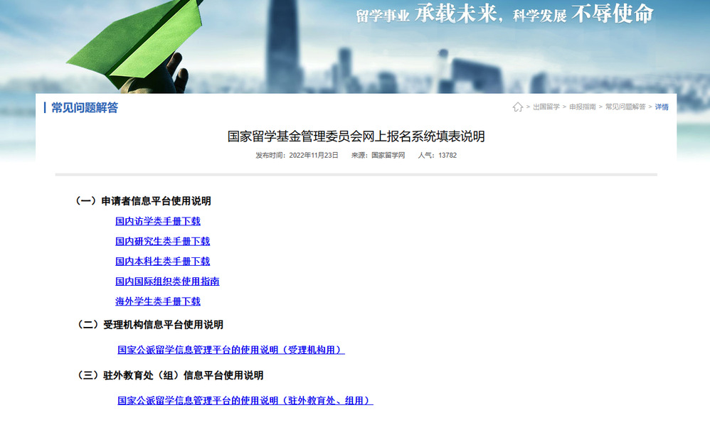 1. 了解选派计划(2022年国家留学基金资助出国留学人员选派简章)、选派类别、基本申报条件和申请时间等相关信息(国家公派出国留学外语合格条件);