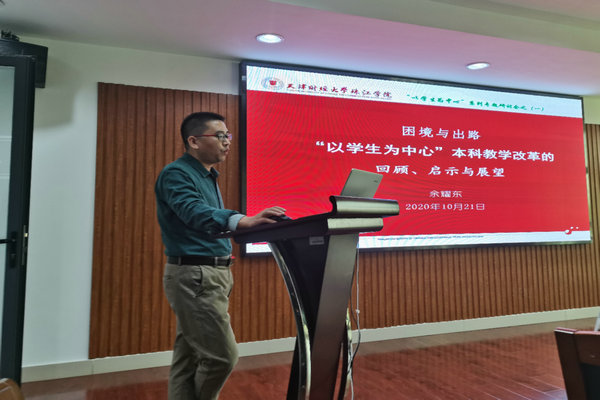随后,余耀东老师从本科教学改革困境——老三中心(以教材为中心、以教师为中心、以教室为中心),“SC改革”(以学生为中心改革简称“SC改革”)的回顾——美国经验,“SC改革”的启示——珠江实践,“SC改革”的展望——中国教育,本科教学改革出路——新三中心(以学生发展为中心、以学生学习为中心、以学习效果为中心)等方面为大家呈现了一场精彩的演讲。第一,余老师介绍了“老三中心”的历史渊源,理论基础以及认知局限。第二,余老师结合美国教学改革经验,详细地讲解了“SC改革”是什么,“SC改革”为什么和“SC改革”如何做这三个问题,第三,余老师基于布鲁姆教学目标分类理论,结合BEAT365英国官网课程改造实践,定位分析了BEAT365英国官网前三批课程改造的SC目标。进而,结合教育部发布的“SC改革”的政策性文件与中国知网发表的相关论文研究趋势,基于中国教育价值理性提出了“以学生为中心”的教学思考。同时,余老师从使命与目标、成功标准、教与学的结构、学习理论、角色的性质等多视角,对比分析了“新、老三中心论”,并指出从中寻找教改出路。