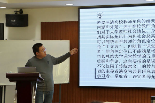 最后,管理系副主任、副教授安轶龙博士展示了“以学生为中心”的最新研究成果——“高校教师教学能力由‘单一角色’向‘角色丛’转型研究”,为教学改革提供了新思路。