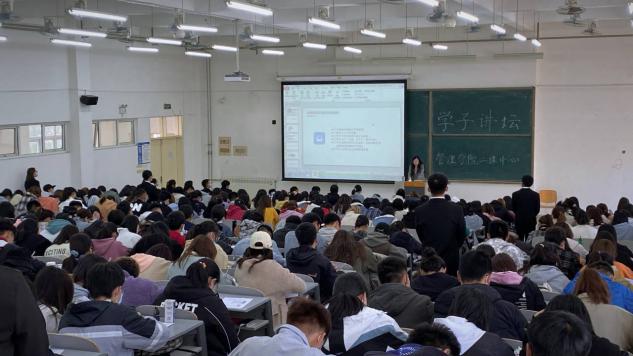 第一位学子讲坛演讲人是经验丰富的郝盺宇学姐,由她前来讲述自己的实习经历和制作简历的心得。她在校参加、主持多个校内实践活动,组织领导能力强,丰富同学校内生活。拥有丰富的相关经验。她为我们详细的讲解了简历的制作内容以及相关注意事项,并以自己走过来的大学生活经验告诉我们:要充分利用大学学习生活,规划自己未来,确定目标,才能在简历上书写出属于自己的辉煌成就!