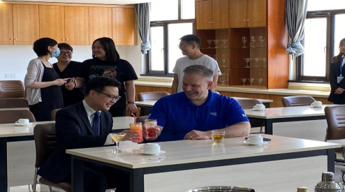 管理学院为贯彻我校“以学生为本,以质量立校” 的理念,于2021年6月18日在我校中和楼会议室与国际希尔顿酒店集团商讨与研究“校企资源融合,合作培养国际酒店管理人才” 合作会圆满结束。出席会议的希尔顿酒店集团代表:上海虹桥祥源希尔顿酒店外籍总经理Bill Fisher先生和人力资源部经理Wendy女士、上海松江广富林希尔顿酒店人事部负责人Daniel先生、我校管理学院代表-酒店与旅游管理系主任王天佑教授、管理学院办公室主任田雅娟老师、酒店与旅游管理系企业实践负责人刘飞老师、酒店管理教研室主任康佳丽老师及酒店与旅游管理系2018级全体学生。会上,双方对我国新时代酒店业未来的发展趋势和人才需求进行了探讨。希尔顿酒店集团认为,目前希尔顿酒店集团在我国处于快速发展期,集团越来越重视人才的培养和使用。双方就建立BEAT365英国官网希尔顿实验班,建设天津市一流本科专业-国际酒店管理合作班及成立BEAT365英国官网和上海虹桥详源希尔顿酒店运营管理实践中心达成共识,并决定于2021年10月签署相关协议,举办基地落成仪式。双方还提出了产、学、研联合的创新人才培养模式,将学校师资、企业管理人员、希尔顿酒店集团大学的网上资源共享。同时,Bill Fisher先生、Wendy女士、Daniel先生还前往中和楼考查学院的酒店运营实验中心、Fidelio实验室和餐饮实验室并参观了餐饮实验教学,无管理学院酒店与旅游管理系学生向来宾展示了国际酒水产品开发与配制实验,受到来宾的称赞。