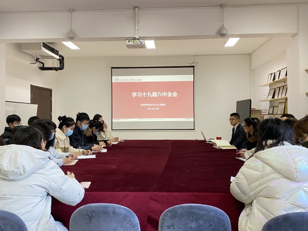 为深入学习宣传贯彻党的十九届六中全会精神,切实把管理学院广大师生的思想和行动统一到全会精神上来,12月17日上午,管理学院党总支在中和楼B409会议室组织学习党的十九届六中全会精神。党总支书记郑鲲鹏作宣讲报告,各支部支委和部分学生党员代表36人参加。