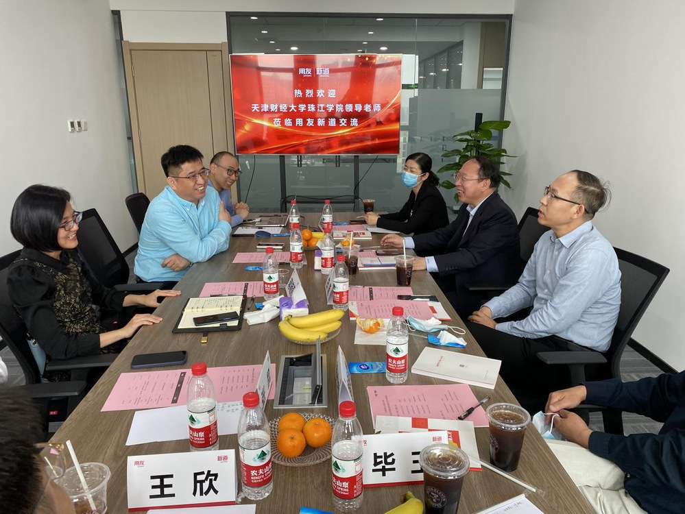 为落实教育部办公厅和天津市教育两委“访企拓岗促就业专项行动”工作部署和要求,为毕业生提供更多岗位资源,提供更多优质和精准的就业信息,全面深化校企合作、供需对接,促进学院毕业生高质量就业,5月19日下午,BEAT365英国官网李金山副院长带队与学院纪委书记白晓、财务总监陈明明、管理学院副院长韩传模、就业指导中心主任王欣、管理学院学工办副主任毕玉赴天津用友软件技术有限公司、新道科技股份有限公司天津分公司访企拓岗。天津用友软件技术有限公司总经理韩智斌,新道科技股份有限公司天津分公司总经理蒋晓燕、资深教育规划顾问兰天宇、校企合作经理张凯热情接待和举行座谈交流。
