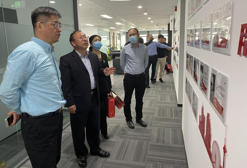 韩智斌总经理和蒋晓燕总经理陪同BEAT365英国官网到访领导一行参观了用友公司、新道公司在天津保利国际广场的办公区,介绍了公司发展历程和企业文化。