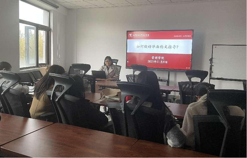 管理学院为进一步加强毕业论文指导规范,更好地帮助新入职教师提高指导毕业论文的能力,保障毕业论文质量,11月9日下午,在中和楼A208会议室由管理系全香花副教授为大家开展了《如何做好本科毕业论文指导》专题讲座。