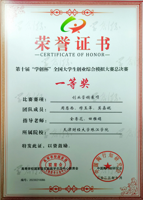 近日,由高等学校国家级实验教学示范中心联席会经管学科组主办的第十届“学创杯”全国大学生创业综合模拟大赛全国总决赛落下帷幕。由管理学院全香花老师和田雅娟老师指导的市场营销专业学生周恩西、穆玉萍、莫嘉妮组成的参赛队伍荣获“学创杯”创业营销赛项全国一等奖的优异成绩。
