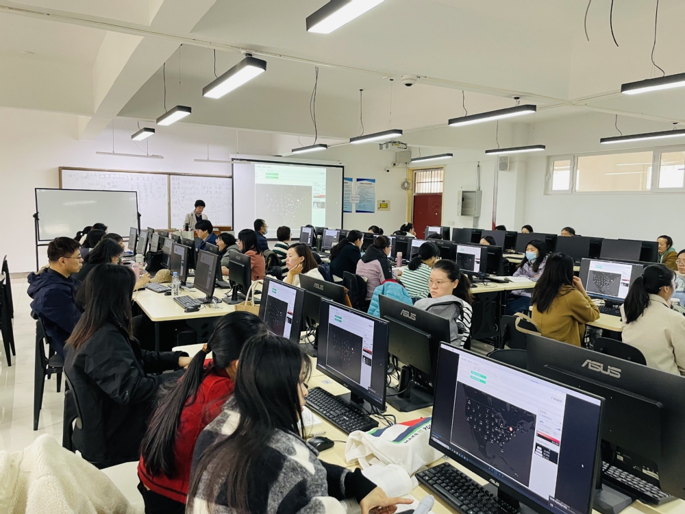 讲座中,杨尊琦教授在第一阶段为大家介绍了数据科学的知识体系和可视化工具Tableau的发展历程;第二阶段通过演示京东超市销售分析等动态案例,让教师们了解如何在实际教学中应用数据分析及可视化技能;第三阶段进行实践操作,让教师们亲自动手操作Tableau软件,制作符号地图、填充地图、混合地图,加深理解和应用。