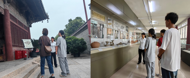 实践团首先走进了天津和平区非物质文化遗产展览馆,开启了对天津非遗文化的探索之旅。展览馆内,以“津味儿”、“工巧”、“百戏”和“医道”四大主题,生动展示了天津地区的独特文化和传统工艺。在参观过程中,同学们仿佛置身于热闹的市井当中,品尝着天津特色美食;感受到每一件工艺作品透露出的匠人的精湛技艺和独特匠心;感受到天津戏曲的博大精深;了解到天津地区的传统医学文化,体会到中医知识的深厚底蕴。