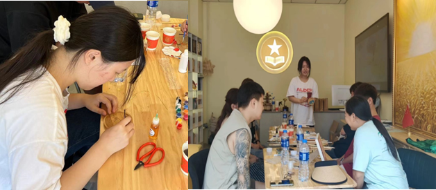 实践团继续前往位于天津市西青区的天津非遗文化研学体验基地——鸿耘志研学社。在这里同学们体验了非遗的制作过程,亲手制作了皮影和掐丝珐琅,并在过程中体会到非遗制作每道工序所需要的极高耐心和技巧。在同经营者的对话中,其提出非遗的传承和当代人的生活是双向作用的过程,非遗既需要当代人传承和发扬,当代人也可以在非遗研学过程中体会非遗所带来的情绪价值,在焦躁的社会生活中寻求内心的平静。