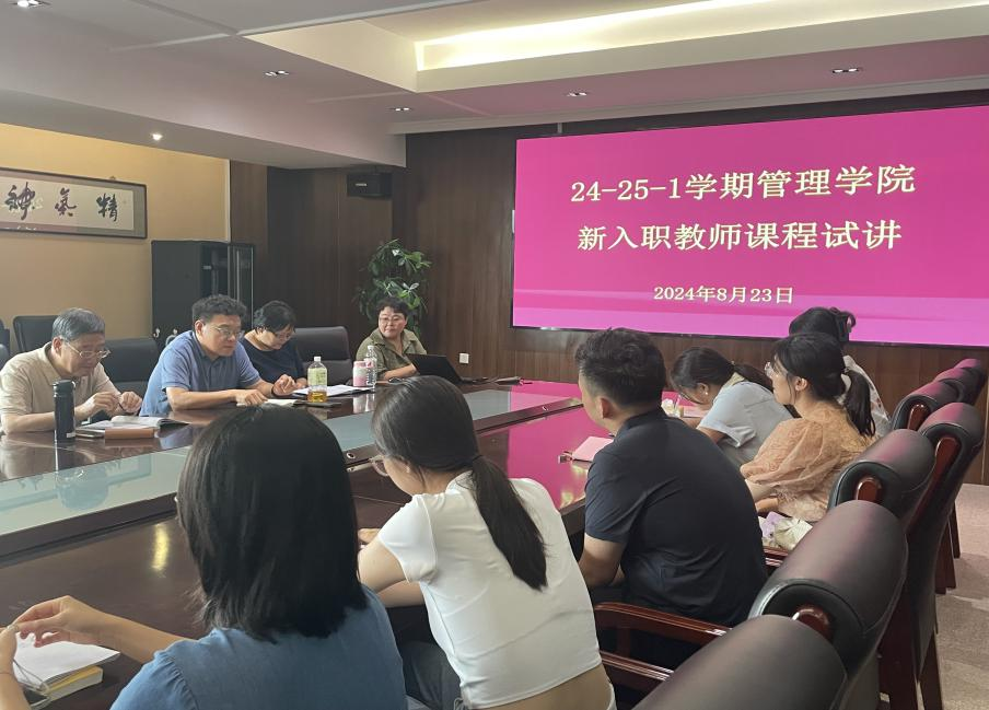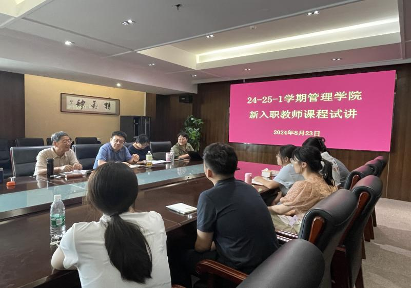 为确保新入职教师尽快适应教学岗位,进一步提高课堂授课能力,2024年8月23日下午,管理学院在中和楼C414开展了刘梦枭、徐明月、李玥璁、王瑞珺、张倩楠、董珊、孟庆泽、王婧宇八位新入职教师课程试讲活动,管理学院院长、副院长、教学督导专家、系主任、办公室主任以及各教研主任参加了本次活动。