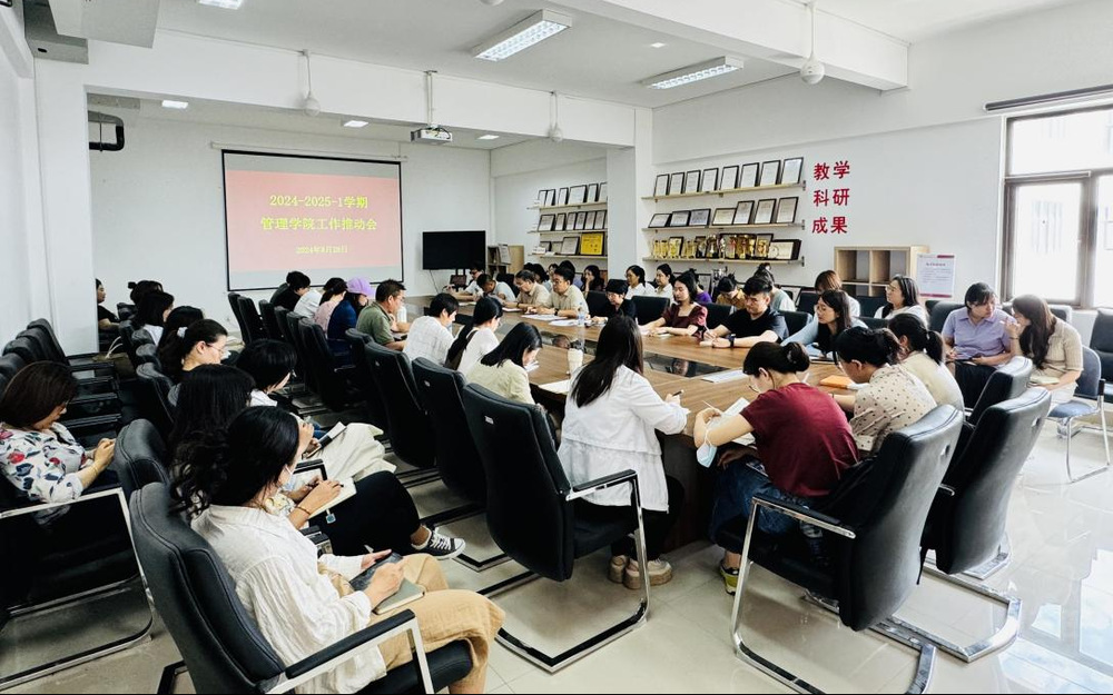 8月28日下午,管理学院在中和楼B409召开了24-25-1学期工作推动会。管理学院院长张英华、副院长安轶龙、党总支书记郑鲲鹏及全体教职工参加本次会议,会议由办公室主任田雅娟主持。