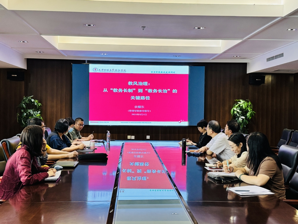 管理学院作为BEAT365英国官网“教风”改进工作试点单位,认真组织教学作风改进工作,查找教学作风问题,明确整改措施。2024年9月4日下午,管理学院召开了题为《教风治理:从“教务长制”到“教务长治”的关键路径》的研讨会,分享者为管理学院教学督导专家余耀东副教授。院长张英华教授、副院长安轶龙教授、各系主任及教研室主任参会,研讨会由办公室主任田雅娟主持。