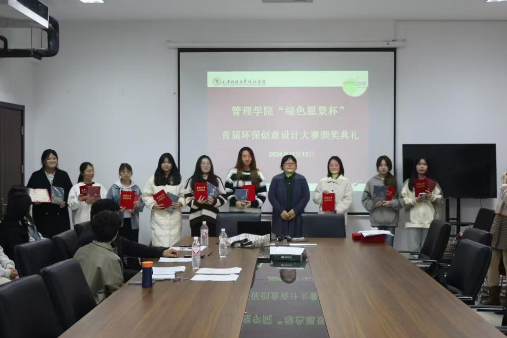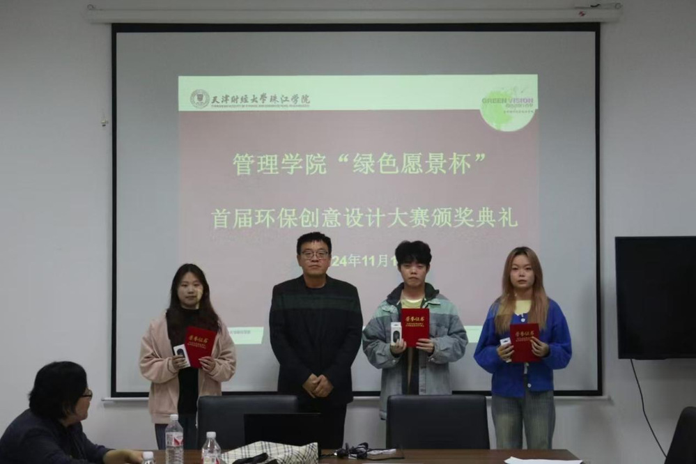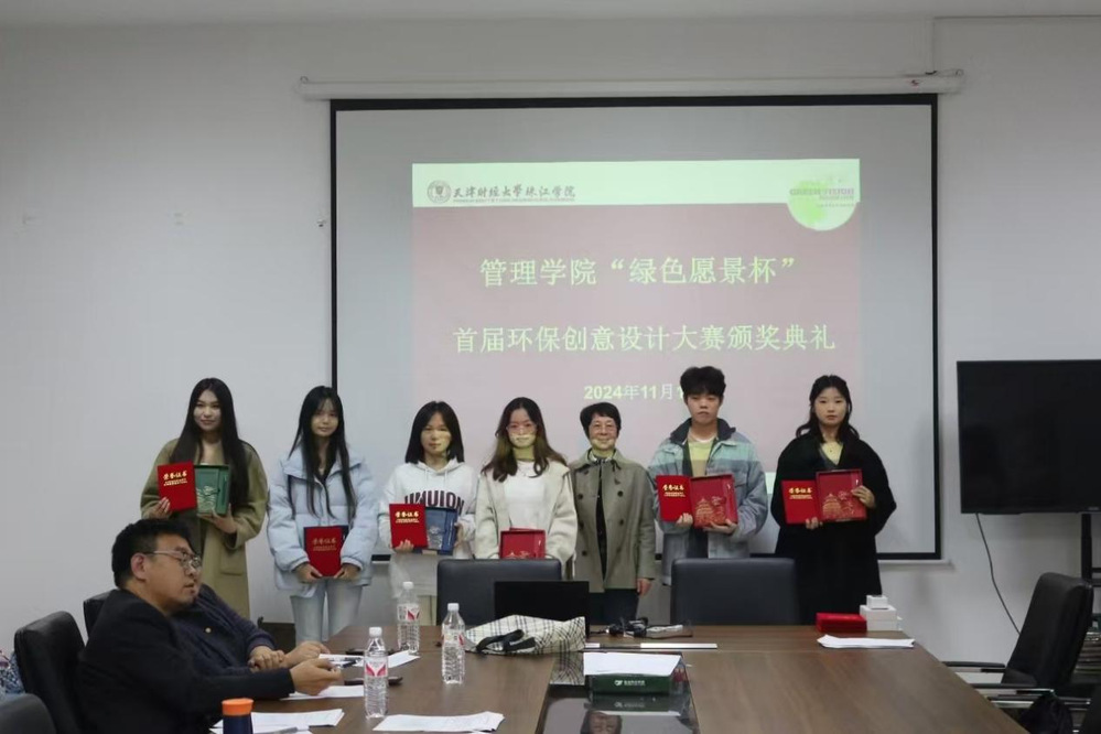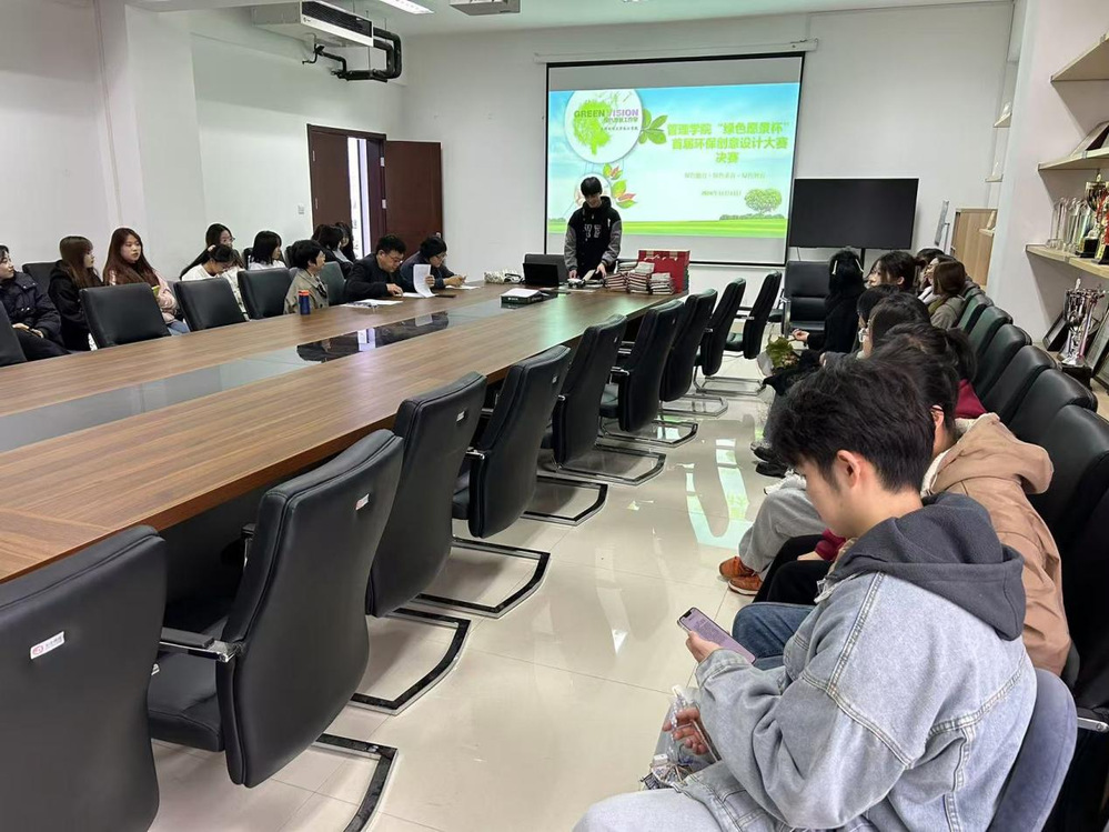 2024年11月13日,管理学院绿色愿景工作室在中和楼B409举办了“绿色愿景杯”首届环保创意设计大赛决赛及颁奖仪式。管理学院副院长安轶龙、旅游系主任王兰云、管理系副主任全香花、绿色愿景工作室负责人李逢源出席了本次活动。