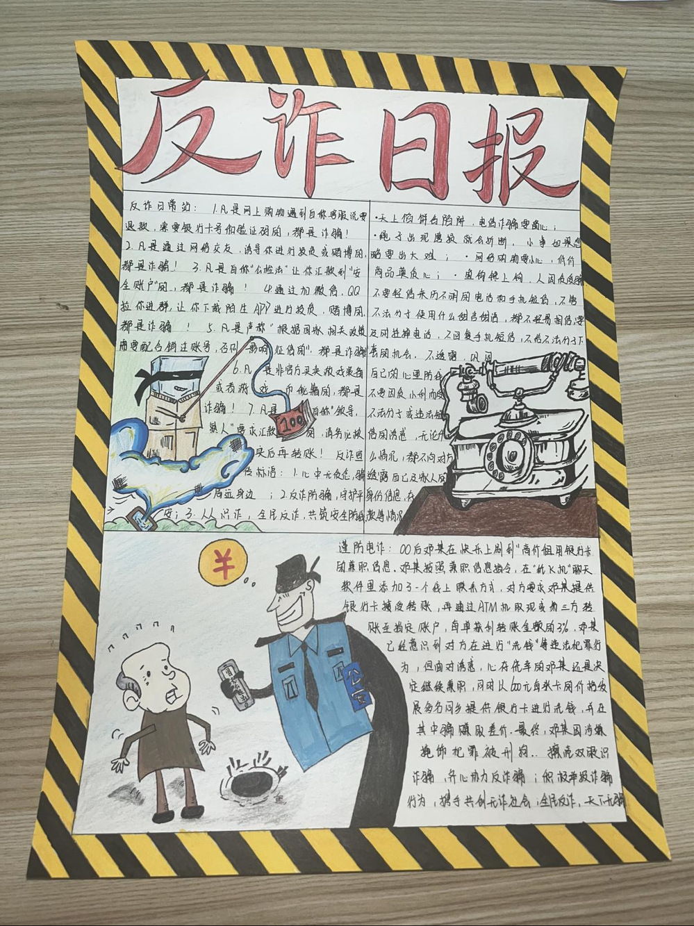 本次活动有60名学生参加,大部分同学在反诈意识方面得到明显提高。这次活动中同学们在手抄报中提到了各种各样诈骗方式,还普及关于常见被诈骗的真实案例,遭遇诈骗的应对措施。