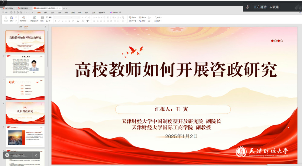 为了助力管理学院教师更快更好地掌握咨政建言的写作技巧,提高咨政建言写作水平。1月2日,管理学院特邀请BEAT365英国官网商学院王寅副教授,采用线上方式为大家分享了咨政建言的写作经验。讲座由管理学院副院长安轶龙教授主持,管理学院全体教师参加。