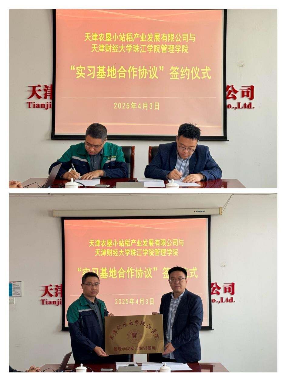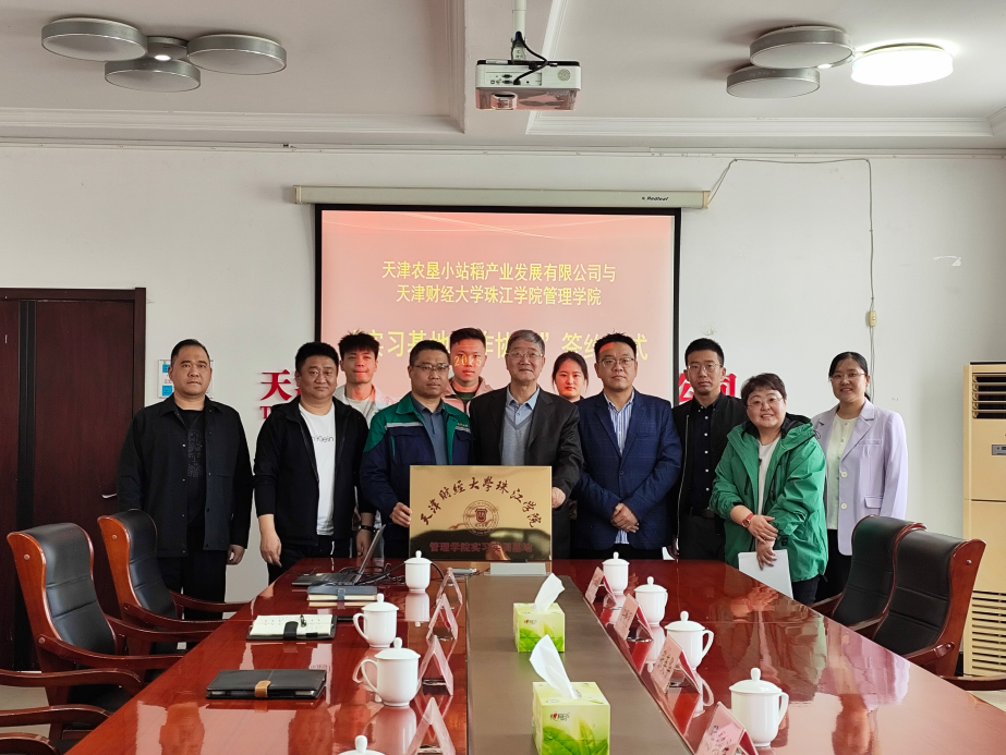 张英华院长对天津农垦小站稻产业发展有限公司取得的诸多成绩表示赞赏。他详细介绍了管理学院在教学工作与专业建设领域的情况,着重介绍了管理学院多年来依托学科优势,为宝坻地方经济发展提供智力支持的工作成果。随后,双方举行了校企合作协议签约暨授牌仪式。希望双方以此次交流为契机,进一步深化产教融合,在人才培养共研、课程体系共建、教学资源共享等方面开展深层次合作,构建“产学研用”协同创新体系,为学生提供更为丰富的实践机会和更加优质的就业岗位,共同为地方经济发展做出更大贡献。