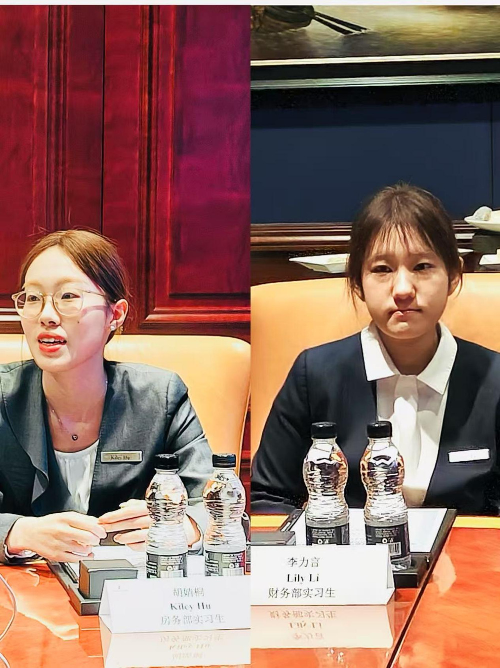 同时会议还邀请了目前在职人力资源部实习生马瑞超、财务部实习生李力言、前厅部实习生胡婧桐等同学结合在丽思卡尔顿酒店的实习经历,分享了从课堂到职场的成长感悟。