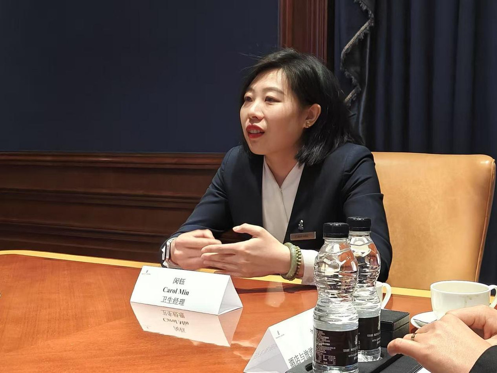 天津丽思卡尔顿酒店人力资源总监韩晶晶热情取消接待了白晓书记一行,对天津丽思卡尔顿酒店前厅、客房、餐饮、会议服务等核心部门进行实地考察,详细介绍了实习生的工作环境、岗位职责及职业发展路径,充分展现其国际化服务标准与人性化管理理念,为后续深化实习合作奠定基础。