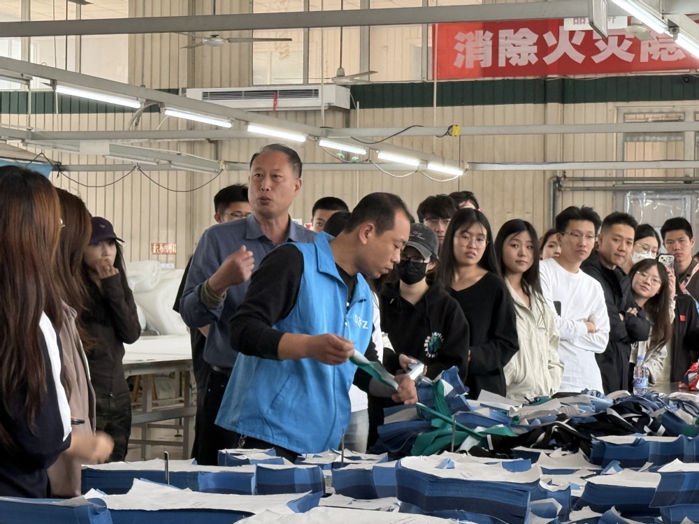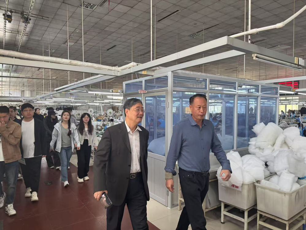 为增强大学生的实践能力与社会责任感,2025年4月23日,管理学院由张英华院长带队,组织工商管理(专升本)2406班49名学生以及管理系部分教师代表前往宝坻“校企结合”实习基地——-天津市大中服装有限公司进行实地调研。