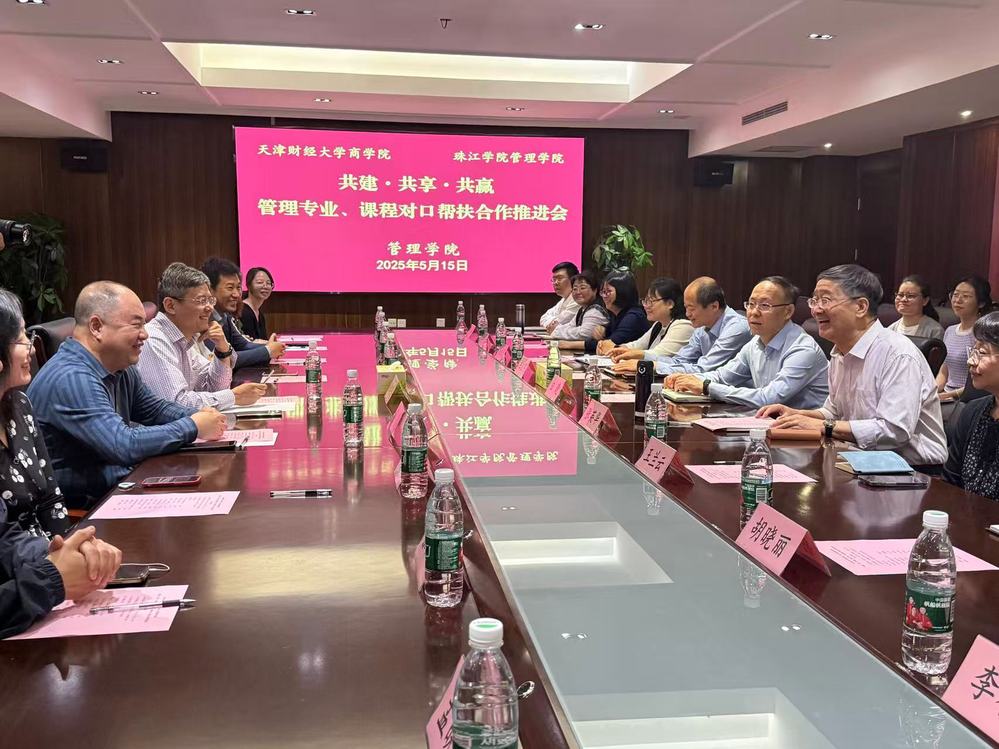 会上,张英华院长介绍了双方与会嘉宾,对商学院一行的到来表示热烈欢迎,并衷心感谢其自建院以来在多方面给予的支持与帮助。他指出,本次推进会旨在推动合作从以往的“一般帮扶” 转向“精准帮扶”,让财大商学院五个国家级一流专业的建设经验在珠江管理学院落地生根,助力管理学院在专业与课程建设高质量发展上实现新突破。随后,张英华院长详细介绍了管理学院的总体发展情况。双方围绕管理专业建设、课程改革、科研合作等核心议题展开深入交流。