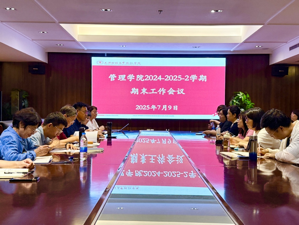 2025年7月9日,管理学院在中和楼C414召开了24-25-2学期末工作会议,对本学期的各项工作进行总结,并对暑期及下学期重点工作进行部署。管理学院院长张英华,副院长安轶龙,党总支书记、学工办主任陈绍生以及全体教职工参会。会议由管理学院办公室主任田雅娟主持。