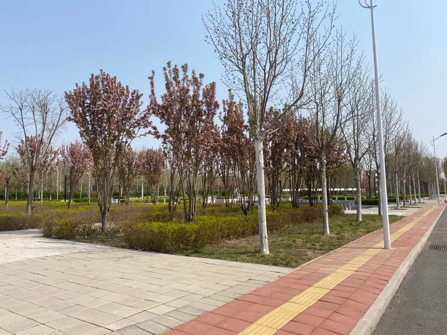 现校园种有法桐、速生杨、毛白杨、金丝柳、馒头柳、垂杨柳、国槐、金叶槐、龙爪槐、合欢、榆叶梅、油松、玉兰、西府海棠、碧桃、枣树、杏树、梨树、桃树等近30余种树木,近2200余株。