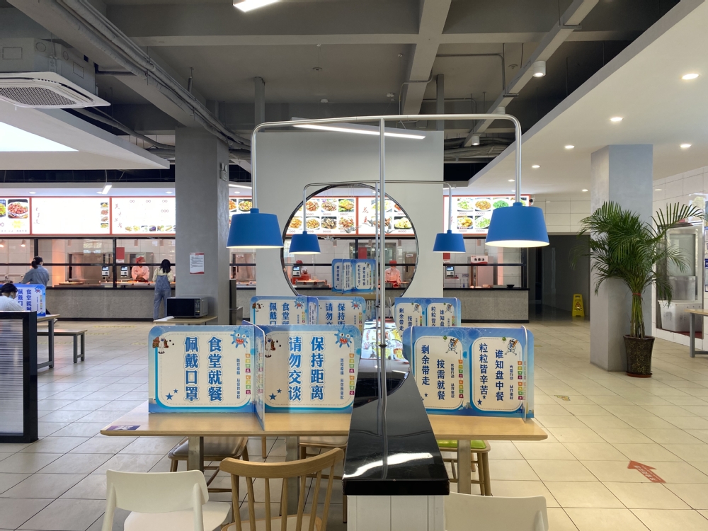餐厅除大锅菜以外另设有风味小吃,窗口共计17个,如:重庆小面、海族拌面、清真餐厅、掉渣饼、好享扒饭、招牌鱼粉、麻辣烫、米掌门煲仔饭、津菜道、削味斋、金陵鸭血粉丝汤、精花荤、初心一碗面、花素、素菜、美味早餐、品牌菜等。从口味上满足南北地域师生的需求,优美且干净整洁的就餐环境使学生拥有了归属感。