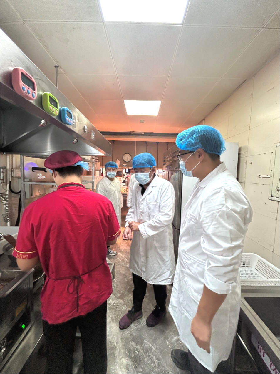 9月24日,学院主动邀请属地市场监督管理局专业监管人员来校开展突击式执法检查。通过查阅资料、实地查验、现场快检等方式,对食堂食品经营许可证、从业人员健康证明、食品留样制度执行情况、后厨环境卫生等重点内容进行专业评估,并现场组织各食堂负责人互评互检。此次外部监管有效检验了我校食品安全工作的合规性与透明度,进一步提升了食堂运营的规范化水平