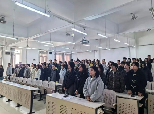 10月21日,开班仪式伊始,全体参会同志齐声高唱中华人民共和国国歌。国歌奏唱完毕后,国贸系学生党支部书记纪玲玲老师详细解读了本次短期集中培训的整体安排与考核标准。