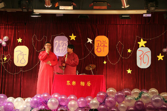 为欢庆2013级新生的到来。金融系迎新晚会于10月24日晚6:30在素质教育中心隆重举行。晚会以“鑫空浩瀚,群新向融”为主题,金融系主任刘泽东老师、辅导员赵营营老师及各系各部门主席团代表出席了晚会,与2013级新生们共同欣赏了这次别开生面的精彩晚会。