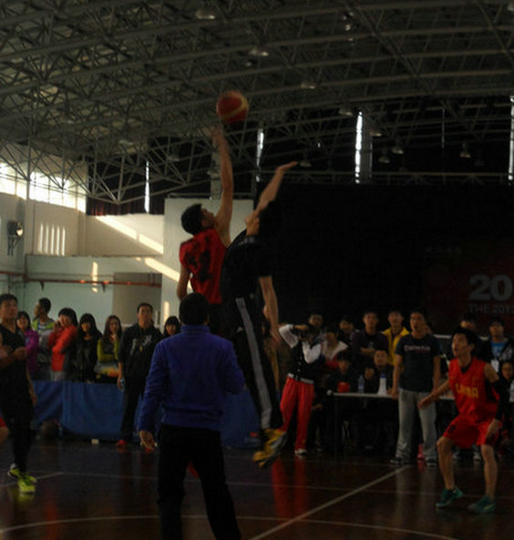 2013年10月30日下午三点,学院体育馆内金融系与会计系展开了此次“珠江杯”的冠军争夺战。随着裁判员哨声响起,比赛正式开始。我系运动员顽强拼搏,努力发挥出自己最好的水平,篮板、抢断、射球……频频得分;场外同学欢呼鼓掌,为运动员呐喊助威。上半场结束,我系运动员以良好的状态和完美的配合与会计系拉开9分暂时领先。下半场,会计系奋起直追,连续得分,双方你追我赶,比赛进入白热化。最终,会计系队员王一凡以出色的发挥为其系拿下了几个关键球,赢得最后比赛。