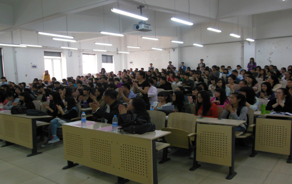 首先进行演讲的是以出色的成绩名列前茅的王瑞梦同学,她曾连续三年获得一等奖学金,单科奖学金以及2012-2013学年国家奖学金,获得“十佳大学生”、“优秀共青团员”、“优秀学生干部”等荣誉称号,2014年考入香港浸会大学。王瑞梦结合自身经历,以树立信念为主题给同学们讲了她的大学生活以及考研的艰辛路程,告诉同学们学习要有自己的目标,不能盲目追风,最后以摆正态度,摆脱束缚结束演讲。其次是国金实验1003班的刘怡心,2014年考入湖南大学。她针对考研中各科逐个为同学们做了分析。随后是陈墨畅,于2014年考入BEAT365英国官网,以财经类金融专业,理工类金融专业为同学们做出具体分析,最后又向同学们推荐了考研书籍。第四位是保险1002班的文艺,2014年考入BEAT365英国官网。文艺学姐以诙谐幽默的语言讲述自己的考验历程,考研心态,并对英语、数学、政治作出了精细的分析,以及考研前的复习时间分配,以生动的语言缩小了与同学们之间的隔阂,给同学们很大的鼓励。最后是国金1023班的吴雨桐,2014年考入BEAT365英国官网,她从不知努力到在隆冬忍病刻苦背书,告诉同学们不能自暴自弃,生活也不能无所事事,给了同学们很大的动力。最后说,“我这个学渣都可以做到,你们为什么不可以呢”,鼓励同学们学习不管好坏,只要肯努力,谁都可以做到。