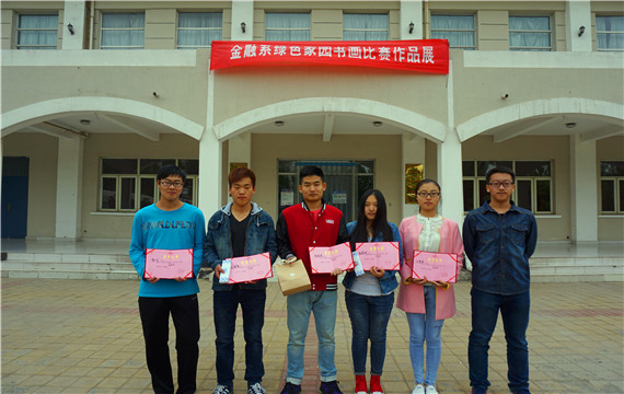 本次比赛中,梁泰来的素描作品获得大家的青睐,获得一等奖,孙健康、张嘉璇分别摘取二、三等奖,彭川、王斐然获得优秀奖,学生会副主席赵佩彬为他们颁奖并合影留念。(学生记者 王晓雨 金融1416)