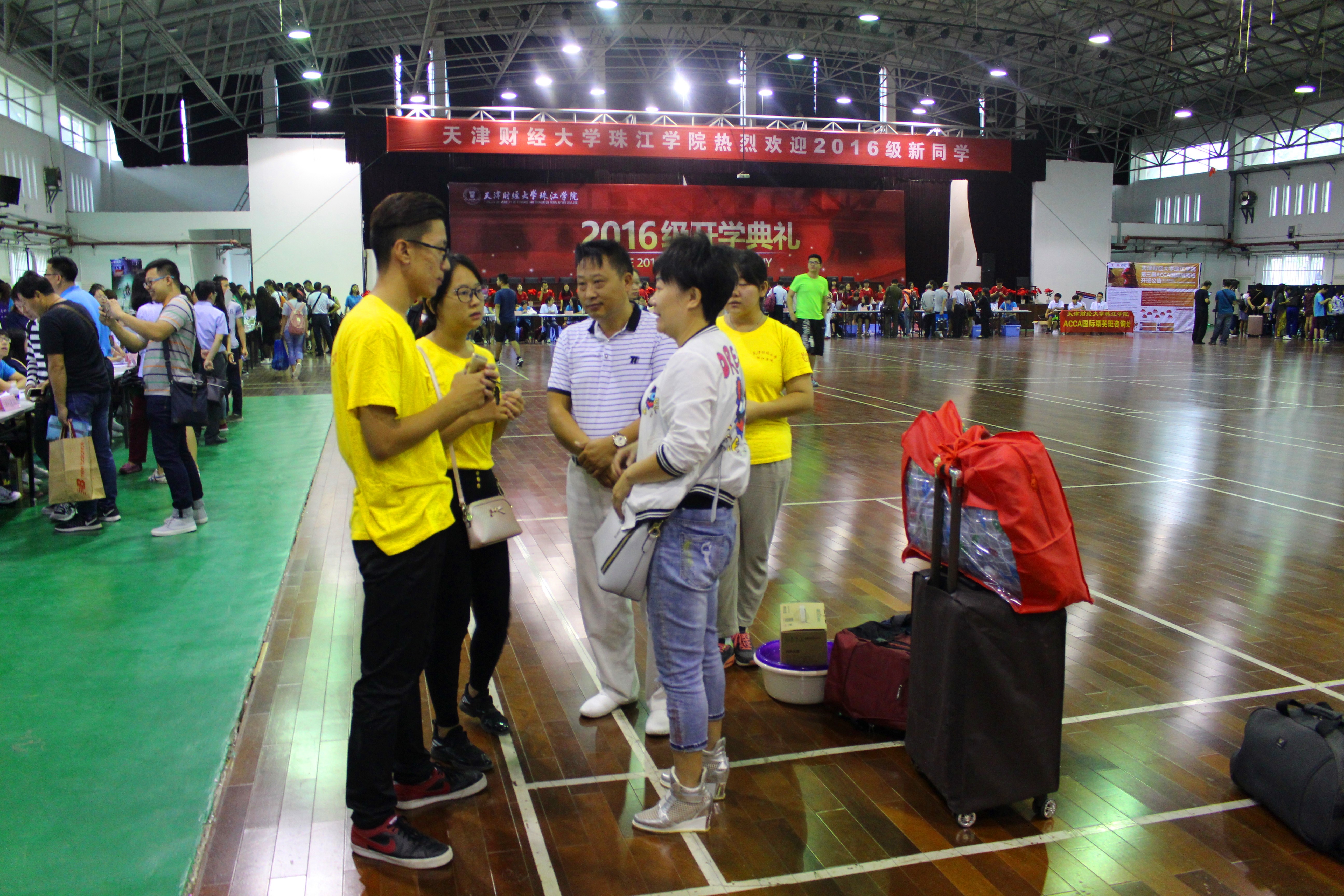 早上六点半,志愿者全部到达体育馆内金融系迎新处就位。随着校车的抵达,新生们陆续到各班级报到登记。志愿者们各司其职,有的在体育馆外侧给新生讲说流程,有的在体育馆内给新生指引方向,有的在各班登记处登记发放有关物件,还有的定时统计新生报到情况......虽然事务繁忙,但在合理的安排下,迎新工作一直在有条不紊地进行。下午,因一新生走错寝室,造成了原床位新生无处整顿的误会后,系辅导员及时联系两新生,有效地解决了中间的误会,使迎新工作恢复常态,平稳进行。伴随着校车的陆续到达,新生们也陆续报到完毕。截止晚上六点,2016届金融系迎新活动圆满完成。