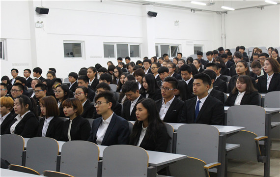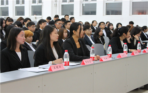 大会开始,主席董晗做大会陈词,ppt中展示各部的职能,她逐一讲述并对分管部门做出相应的说明,充分肯定各个部门的存在,强调部门间合作。辅导员赵宏飞上台致词,他对于上一届的学生会工作做了充分的总结,认为在座学生都是金融系的精英,对此届学生会寄予殷厚希切。其后,主席团副主席逐一上台演讲。副主席吴晗对部长团和大一干事两方面有话要说展开演讲,从自身经历切实影射了在座部长和干事的心情,用微信公众号文章“部长你爱过你的部员吗”深深打动全体成员;陈秋宏从学生会工作需要改进的地方入手,以自己分管的部门为例,做了详细的调整和计划安排;王晓雨则从自己在学生会的成长历程为主线,分述了不同时期的责任与义务,介绍了分管部门的职能和最近承办的工作要务;郑杰详细解说了自己分管部门的职能列举最近主办的活动,加强同学们对这些部门的认识。演讲汇报结束后,全体大会上播放各部干事们的心得感受视频,新面貌象征着新气象,大一干事们干劲十足,畅谈入学生会以来所获所得并立表努力决心,为自己加油的同时也为金融系学生会鼓舞士气。最后辅导员赵宏飞给主席团颁发聘书,主席团给部长团颁发聘书。