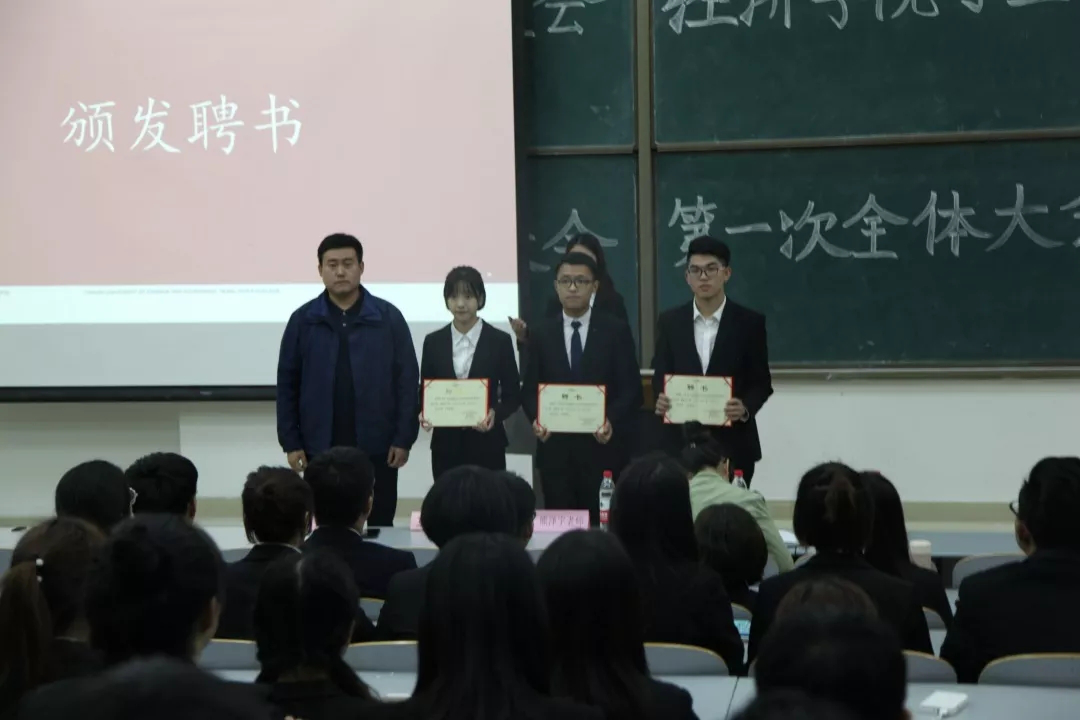 首先,熊泽宇老师为主席团颁发聘书。其次,主席团依次为部长团颁发聘书。接下来,主席马博博,副主席卢梓煜、黄寅依次上台演讲。各自对自己所分管部门前期工作以及未来发展作了简要讲述。主席团发言完毕后,熊泽宇老师和张慧省老师分别进行讲话。