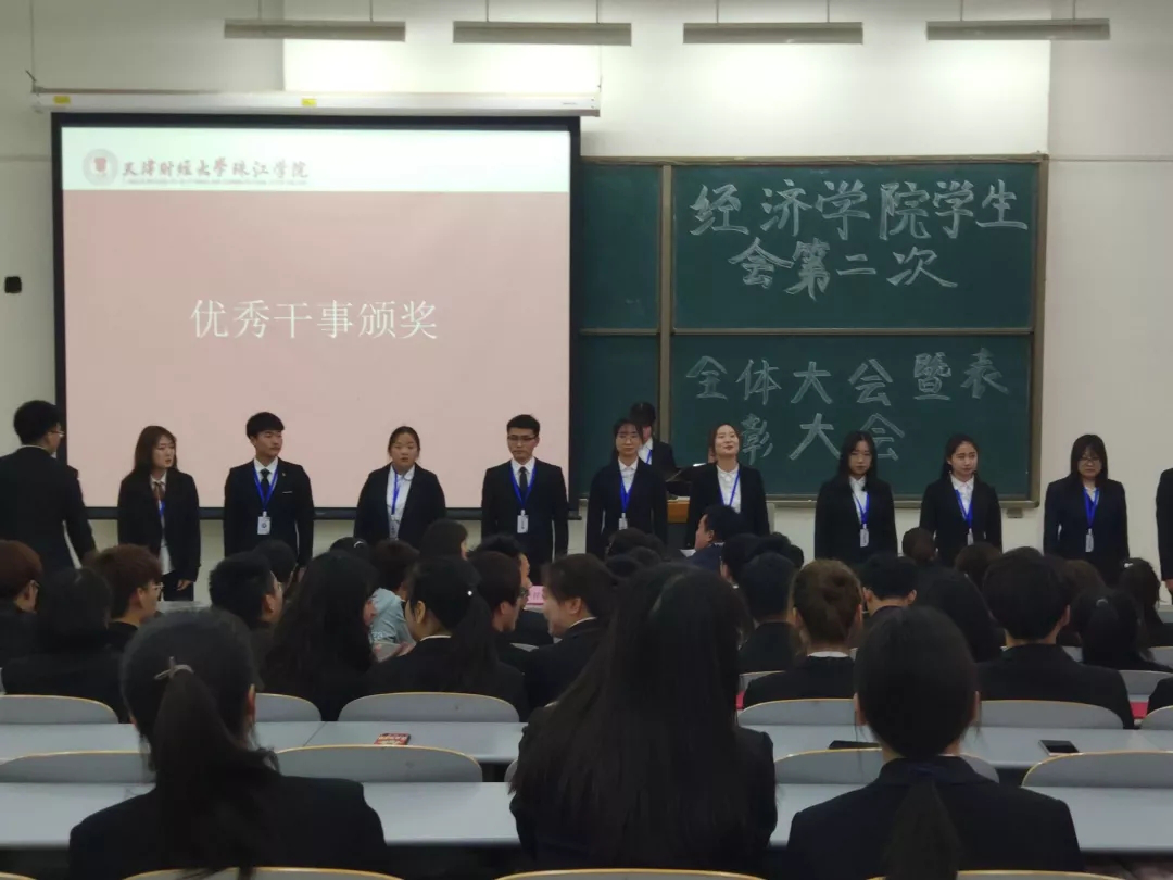 此次会议不仅仅是经济学院第二次全体大会,也是对上一学期表现优秀的优秀干事们和优秀部门的表彰大会。获得“优秀干事”荣誉称号的同学分别是:秘书部的李生远、刘昕缘、马晓宇;外联部的王尧、方海正、罗晓彤;生活部的刘宇、王丹妮、王雨竹;学习部的黄兴旭、顾川、李云豪;体育部的刘莹、李鹏涛、丁蕊;文艺部的王渊、程诗玥、王婧;新媒体部的徐艺珊、马宏宇、刘瑞雪、靳文杰。获得“优秀部门”荣誉称号的部门是秘书部、生活部和新媒体部。各位老师和主席团为这些同学和部长进行了颁奖。
