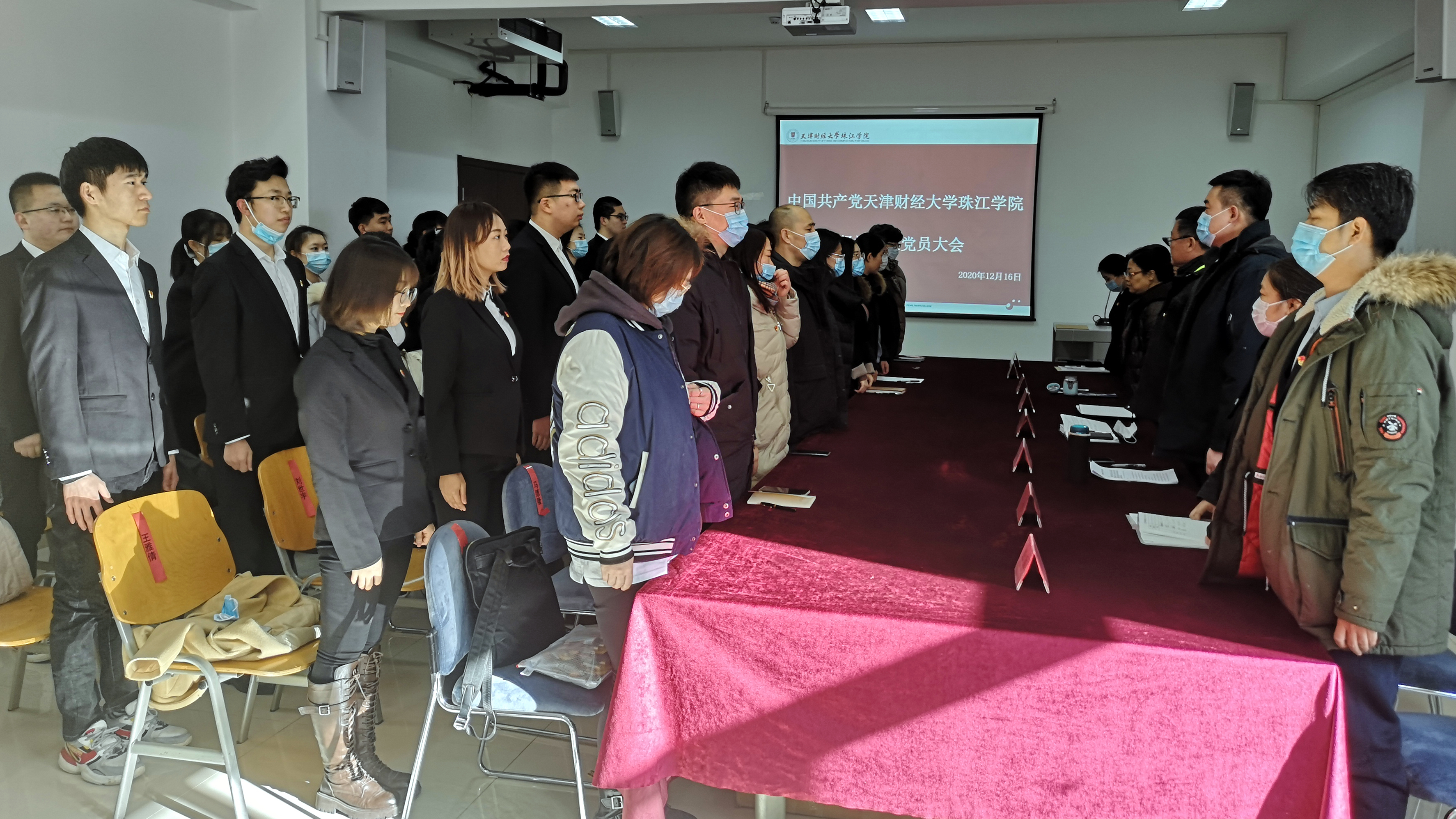 大会在庄严的国歌声中开幕。肖燃同志宣读学院党委《关于撤销和成立有关党组织的通知》(津财大珠院党发〔2020〕19号)、《关于成立经济学院党总支党员大会筹备工作领导小组的通知》文件。并按照选举流程大会通过了监票人及计票人名单和党总支委员会委员候选人建议名单。