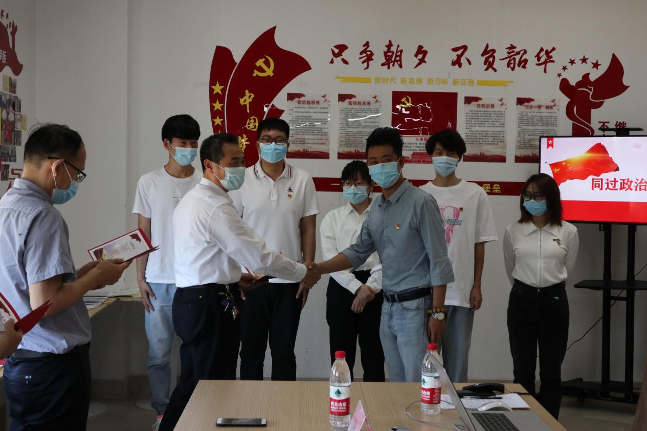 活动中,还为6、7月份入党的党员过了一次“政治生日”。在“政治生日”仪式上,李建航、白晓、王猛三位领导以老党员身份为6、7月份入党同志送上“生日贺卡”,并寄语要永葆初心,坚定信仰。教师党员代表张萌以及学生党员表示:此次活动感受到了党组织的温暖,在以后的生活学习工作中,要牢记使命,砥砺前行,以更加严谨认真的态度,积极履行党员义务,踏实勤恳为人民服务。之后全体党员一起重温了入党誓词。