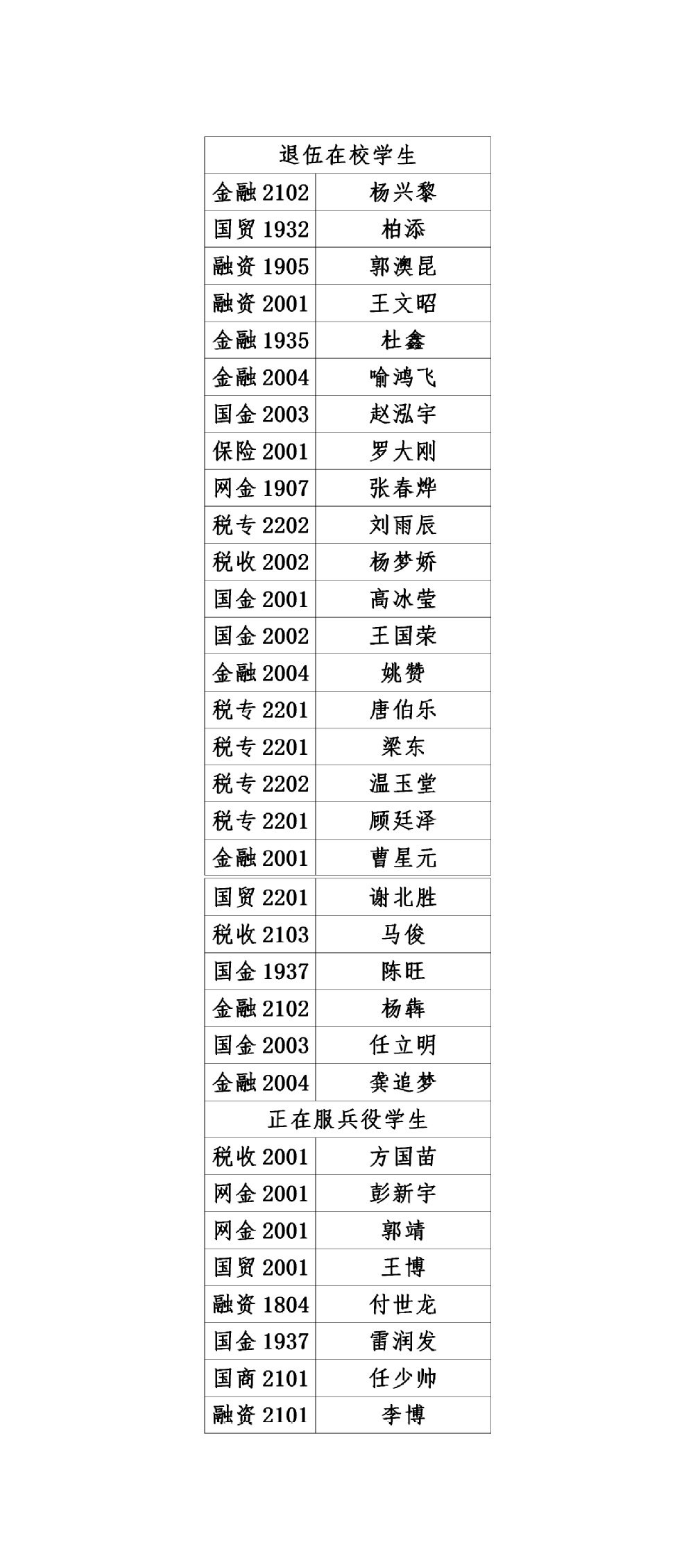 经济学院参军入伍光荣榜