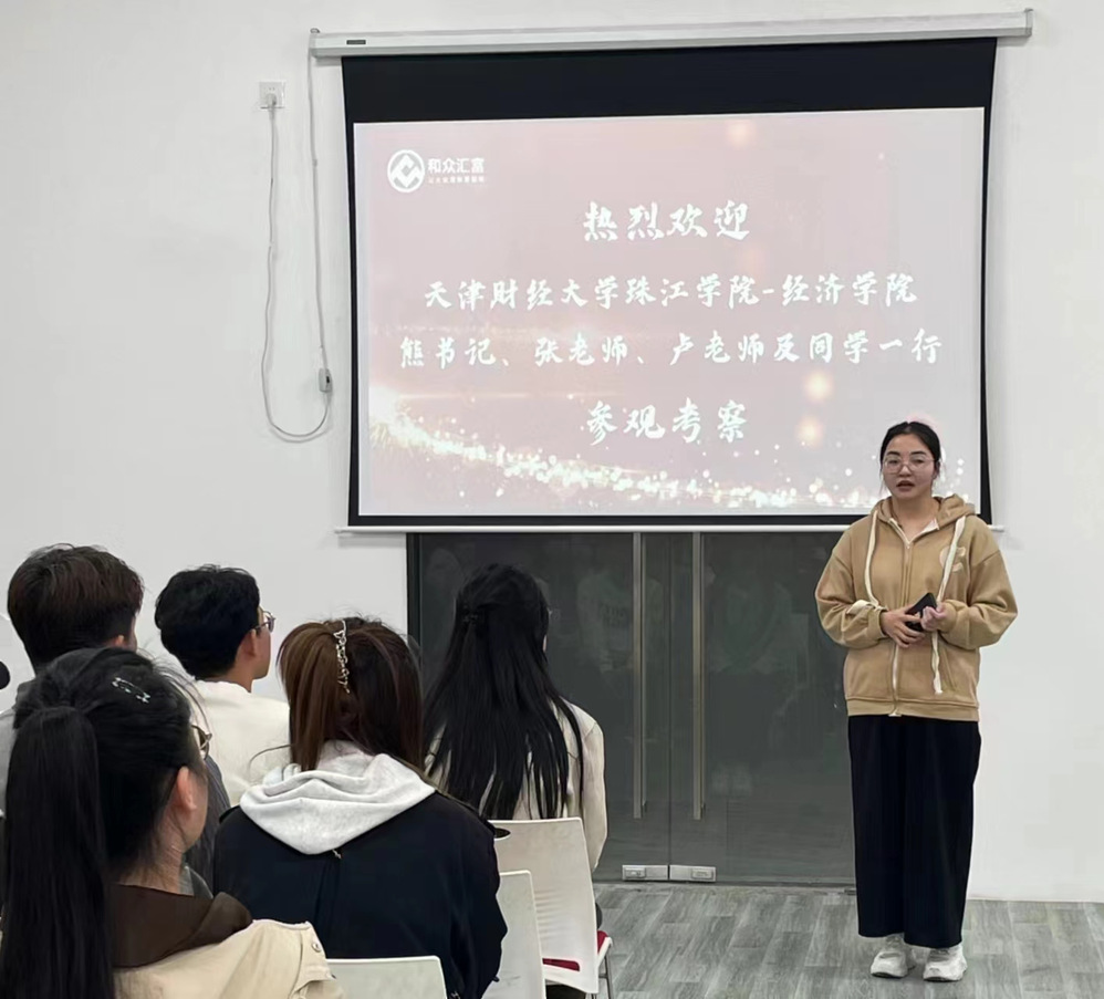 近日,经济学院党总支书记熊泽宇带队前往和众汇富科技有限公司开展访企拓岗活动。和众汇富科技有限公司是国内知名金融科技企业,致力于金融科技领域的研发和应用,拥有丰富的金融科技人才和技术资源。此次访企拓岗旨在深化校企合作,促进毕业生高质量就业。学工办辅导员张晓菲、卢瑶及30名大三学生参加了此次活动。