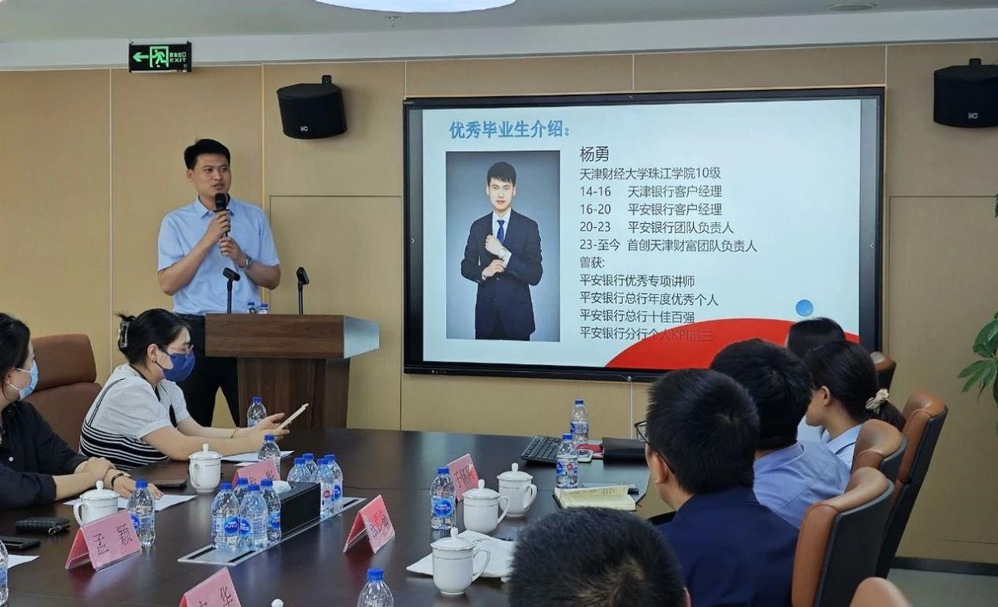 经验分享环节,有首创证券的职场精英分享自己的职场经验,也有同门学长学姐对在校学弟学妹们的亲切鼓励。交流互动环节,同学们提出了个人发展、职场规划等方面的问题,嘉宾们一一予以解答。此外,张哲临还专门为在场学生介绍了天津辖区证券市场从业人员的情况,张洋更是欢迎同学们来到首创证券天津分公司实习。