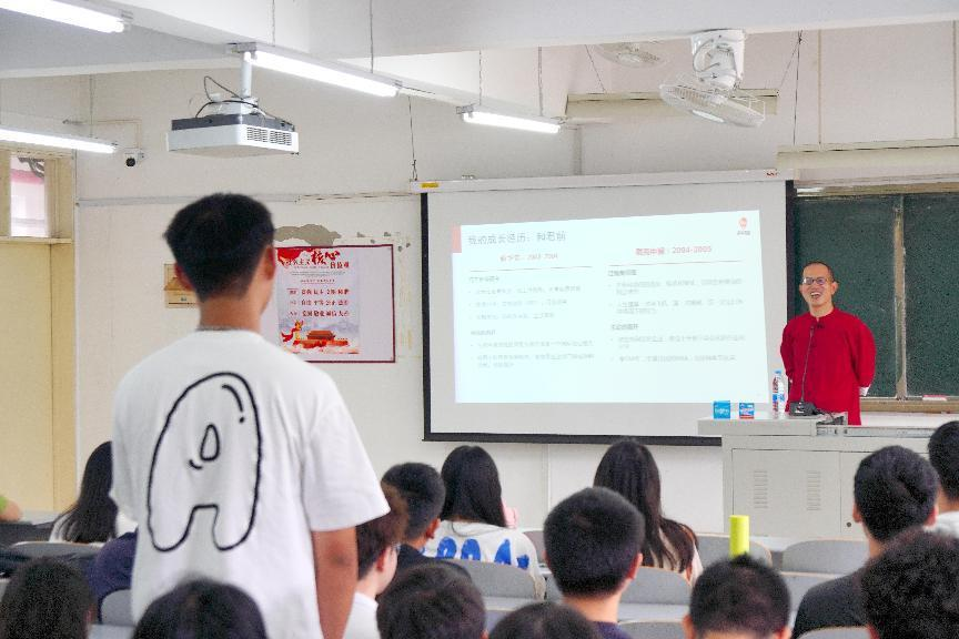 与以往的宣讲会不同,本次活动并未局限于企业和岗位的介绍,而是由万店慧福智库创始人陈志强先生以个人的成长经历为蓝本,为在场的学生们深入剖析了如何找到属于自己的职业发展之路。