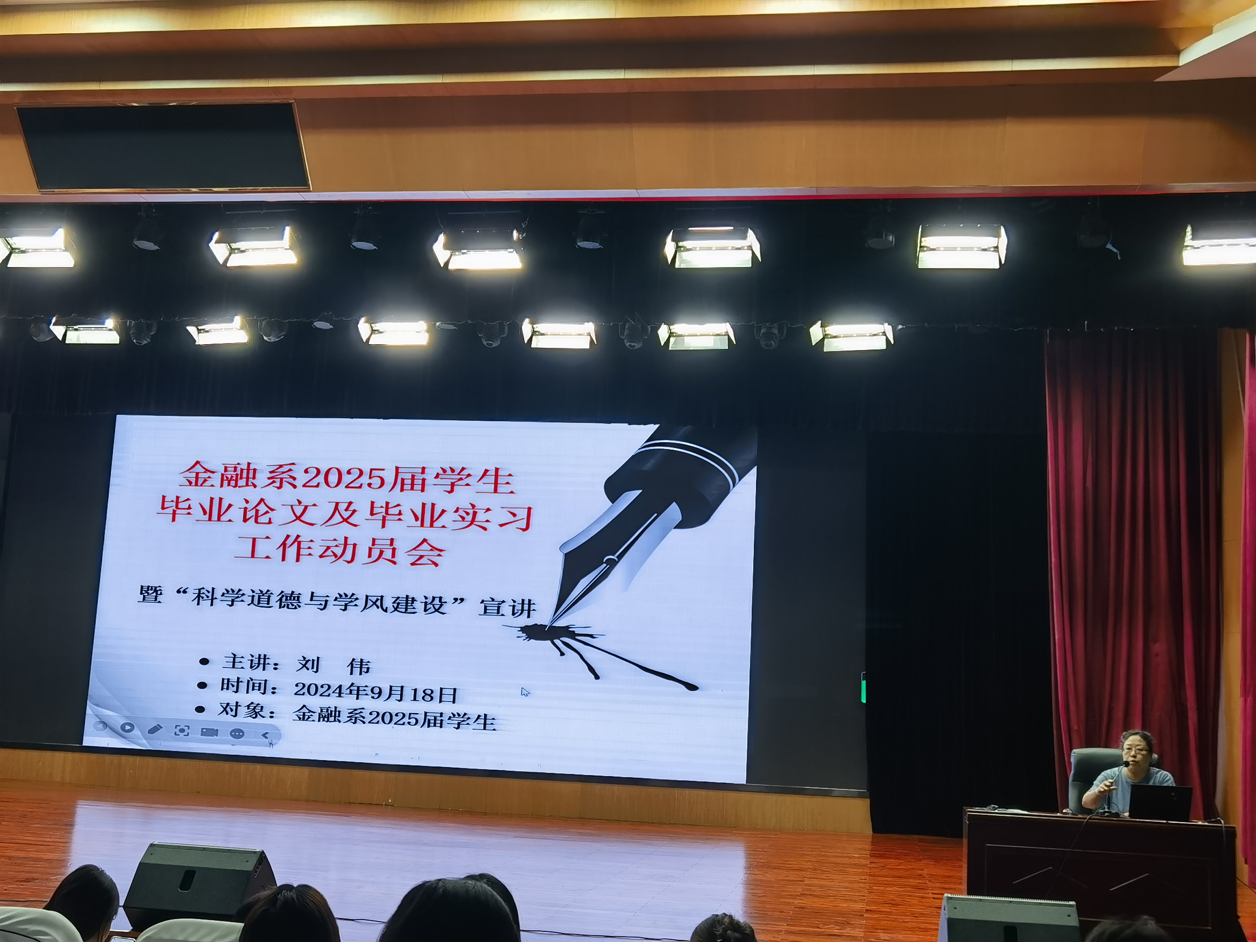 为切实做好2025届本科毕业论文及毕业实习工作,促进学生高质量完成学业和顺利实现就业,9月中旬开始,经济学院金融系、国贸系和财税系先后召开2025届本科生毕业论文推进会暨毕业实习工作动员大会,各系主任、教研室主任级2021级全体学生参加会议。