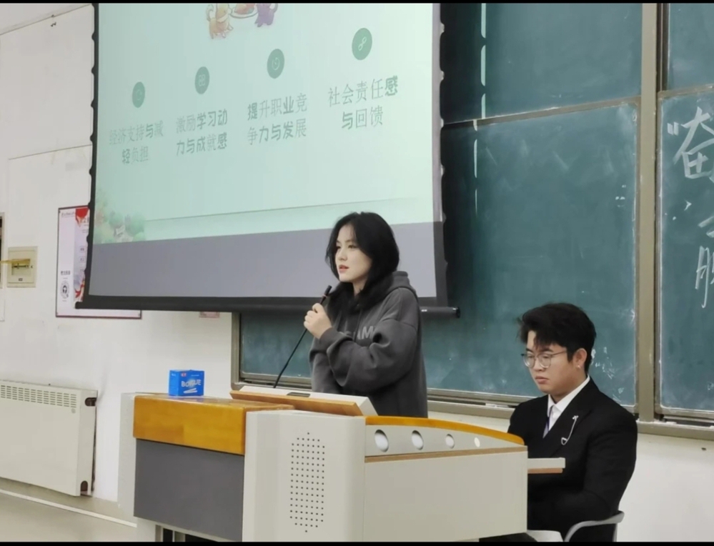 张欣雨同学总结了学习建议,比如要制定短期与长期计划、课前充分预习以及上课时选择坐在前排等。她倡导同学们积极参与社会实践活动和学科竞赛,以赛促学,提升自身能力,开拓视野,积极争取评奖评优。